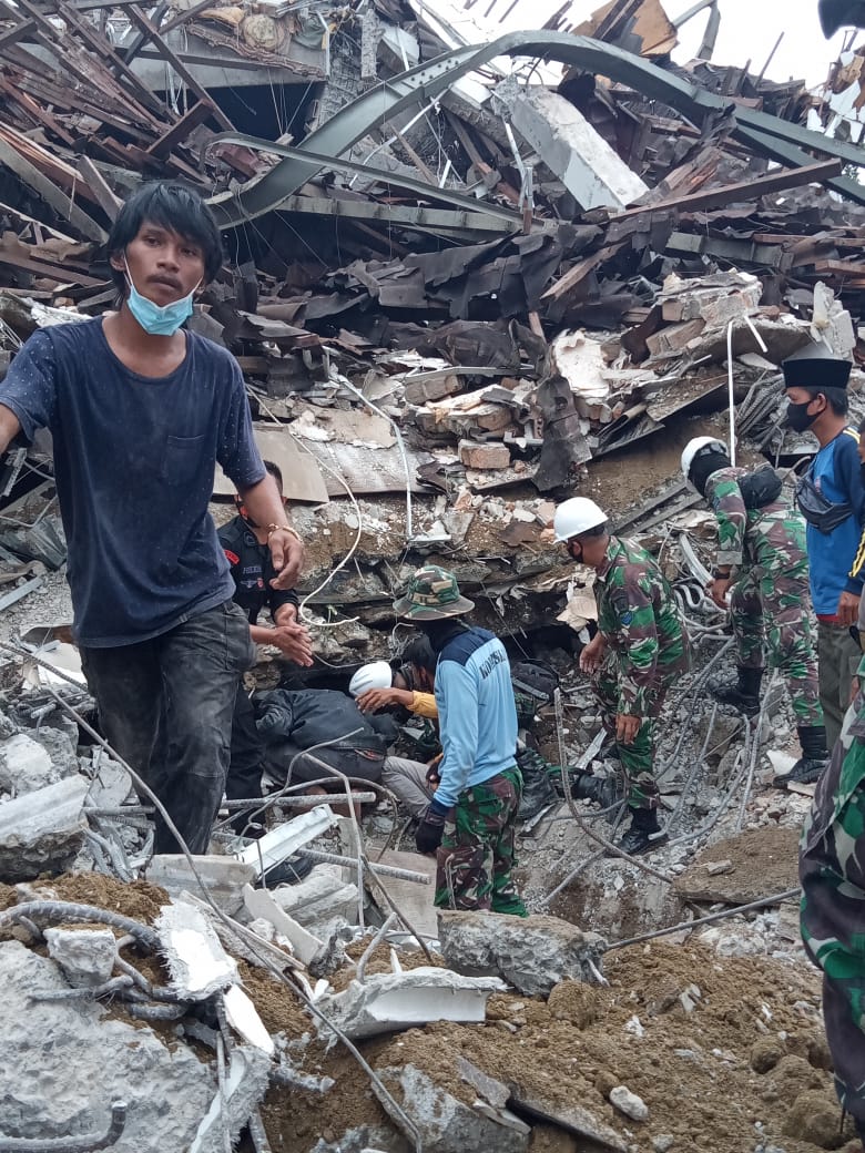 Sedangkan 2 korban gempa yang berprofesi sebagai Security yang berhasil diselamatkan atas nama Rahman umur 25 tahun dan Muh.Isra umur 25 tahun , Prajurit TNI AL Tim Lanal Mamuju membantu evakuasi korban dari pukul 09.15 Wita dan berhasil mengevakuasi korban dengan selamat pada pukul 13.45 Wita, terang Danlanal Mamuju