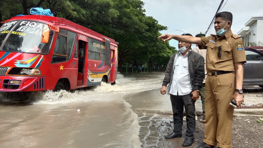 ”Pertama, saluran air harus diperbaiki, Kedua, badan jalan dinaikkan kurang lebih satu meter dari muka badan jalan,” kata Basri, Selasa (19/01/2021).