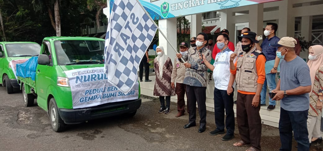 BN Online, Barru–-Bupati Barru, Suardi Saleh mengikuti acara pelepasan bantuan Pemerintah Kecamatan Barru untuk korban bencana gempa di Sulawesi Barat (Sulbar).