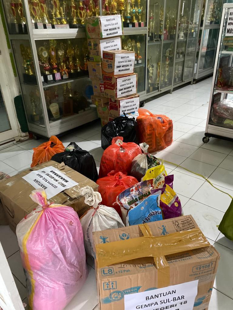 BN Online, Makassar--Sebagai bentuk kepedulian terhadap bencana yang menimpa bangsa kita akhir-akhir ini terutama di wilayah Sulawesi Barat, UPT SPF SMP Negeri 18 Makassar menyalurkan bantuan kemanusiaan untuk warga yang Terdampak bencana gempa di Sulawesi Barat tepatnya di Mamuju dan Majene.