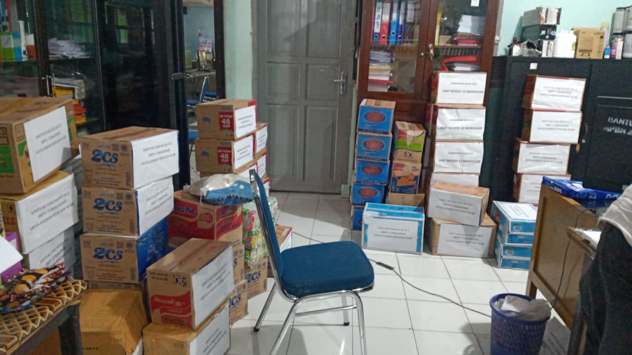 BN Online, Makassar–UPT SPF SMP Negeri 13 Makassar, menyerahkan bantuan kemanusian bagi korban Gempa di Majene dan Mamuju Sulawesi Barat, penyerahan bantuan secara simbolis Ke Posko Dinas Pendidikan Kota Makassar.