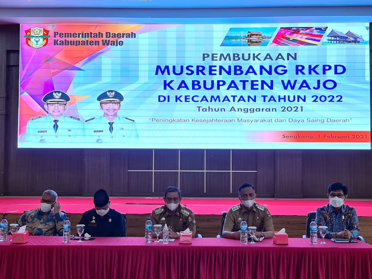 BN Online, Wajo–Musyawarah Perencanaan Pembangunan (Musrenbang) tingkat kecamatan di Kabupaten Wajo dibuka secara resmi Bupati Wajo, H.Amran Mahmud di Ruang Pola Kantor Bupati Wajo, Senin 1 Februari 2021.