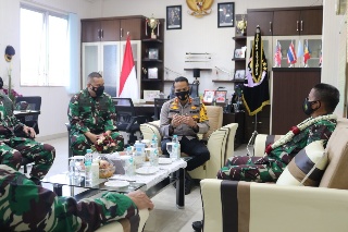 Pangdam I/BB Mayjen TNI HasPangdamanuddin, S.I.P., M.M didampingi Danrem 031/WB Brigjen TNI M. Syech Ismed, S.E., M.Han beserta rombongan melaksanakan kunjungan kerja dan silaturrahmi ke Mako Polres Dumai, Jumat (05/02/2021).