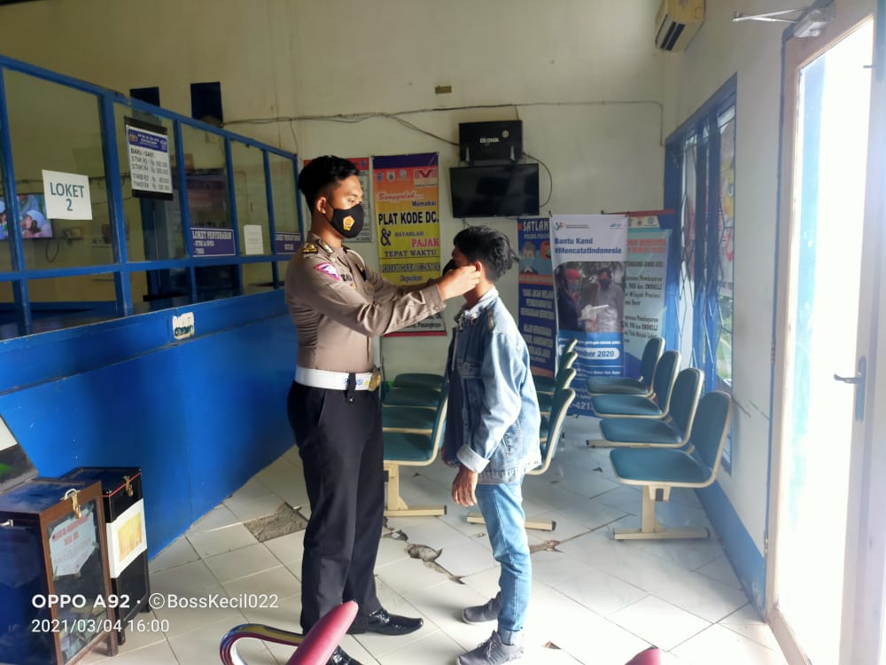 BN Online, Pasangkayu–Unit Regident Sat Lantas Polres Pasangkayu terus edukasi Masyarakat dalam memutus mata rantai penyebaran Covid-19. Hal ini dapat dilihat dengan ketekunan Kanit Regident Satlantas Polres Pasangkayu IPDA I Gede Yoga Pranata yang terus memantau dan membagikan masker kepada Masyarakat yang datang ke Kantor Samsat mengurus surat kendaraan bermotornya.