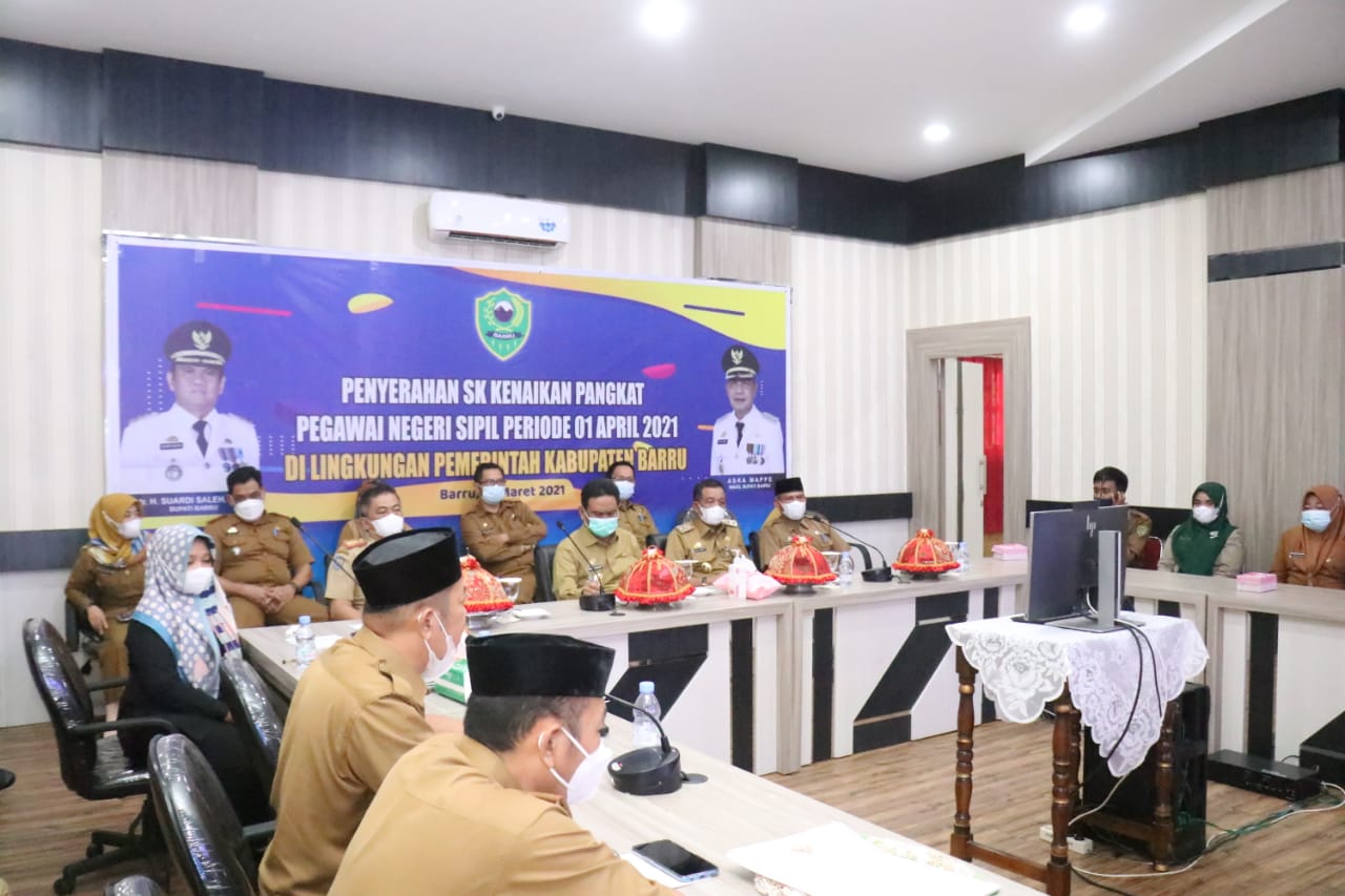 BN Online, Barru— Pemda Barru yang sejak tiga tahun belakangan mendapatkan predikat terbaik dalam administrasi pengurusan Kenaikan Pangkat Se-Kantor Regional IV, kembali gelar Penyerahan SK. Ada sekira 511 ASN yang mendapatkan anugerah ini, yang terbagi atas 61 orang Golongan IV dan 450 orang Golongan III, baik kategori Struktural, Fungsional Umum, Fungsional Non Guru, maupun Guru.