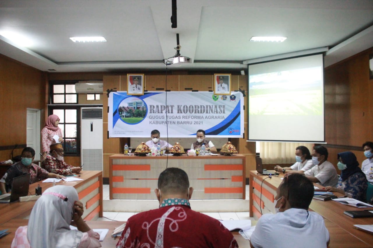 BN Online, Barru– Sekretaris Daerah DR Ir Abustan AB membuka Rapat koordinasi awal Gugus Tugas (Gugus) Reforma Agraria Kabupaten Barru tahun 2021 yang berlangsung di Ruang Data, Jumat (26/3/2021)
