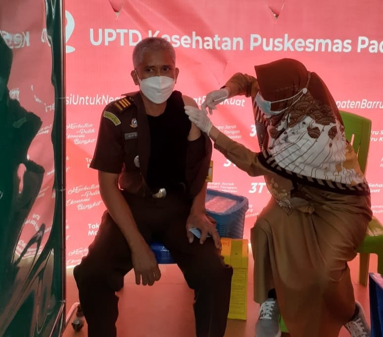 BN Online, Barru–Sekitar 50 Pegawai Kejaksaan Negeri Kabupaten Barru di Vaksin Sinovac di Puskesmas Padongko, Kecamatan Barru, Kabupaten Barru, Sulsel, pada Selasa siang (06/04/2021).