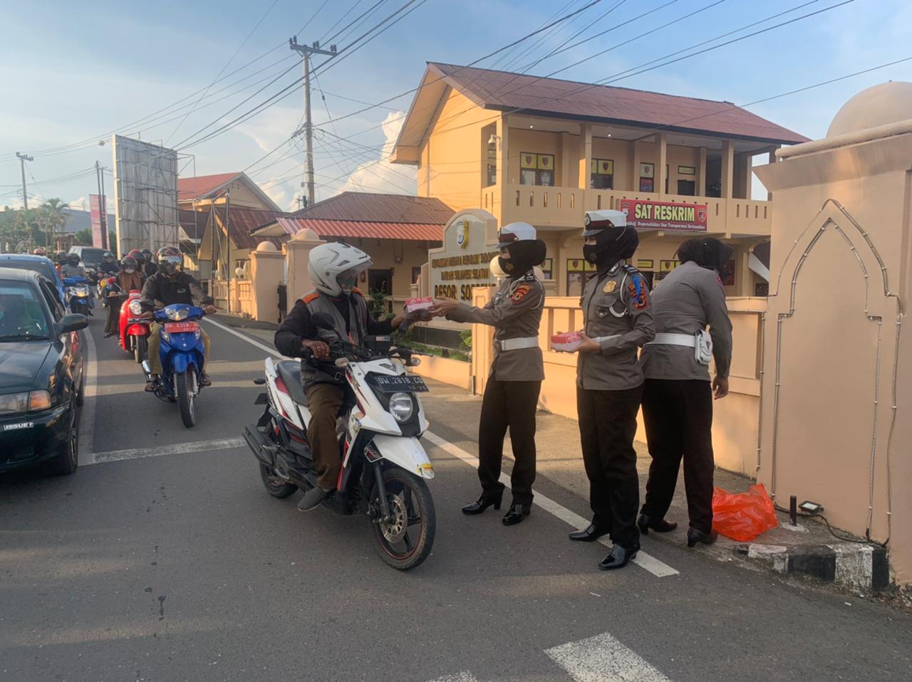 Berbagi Takjil buka puasa tersebut dilaksanakan dengan menyasar para pengendara yang melalui Mapolres Soppeng.