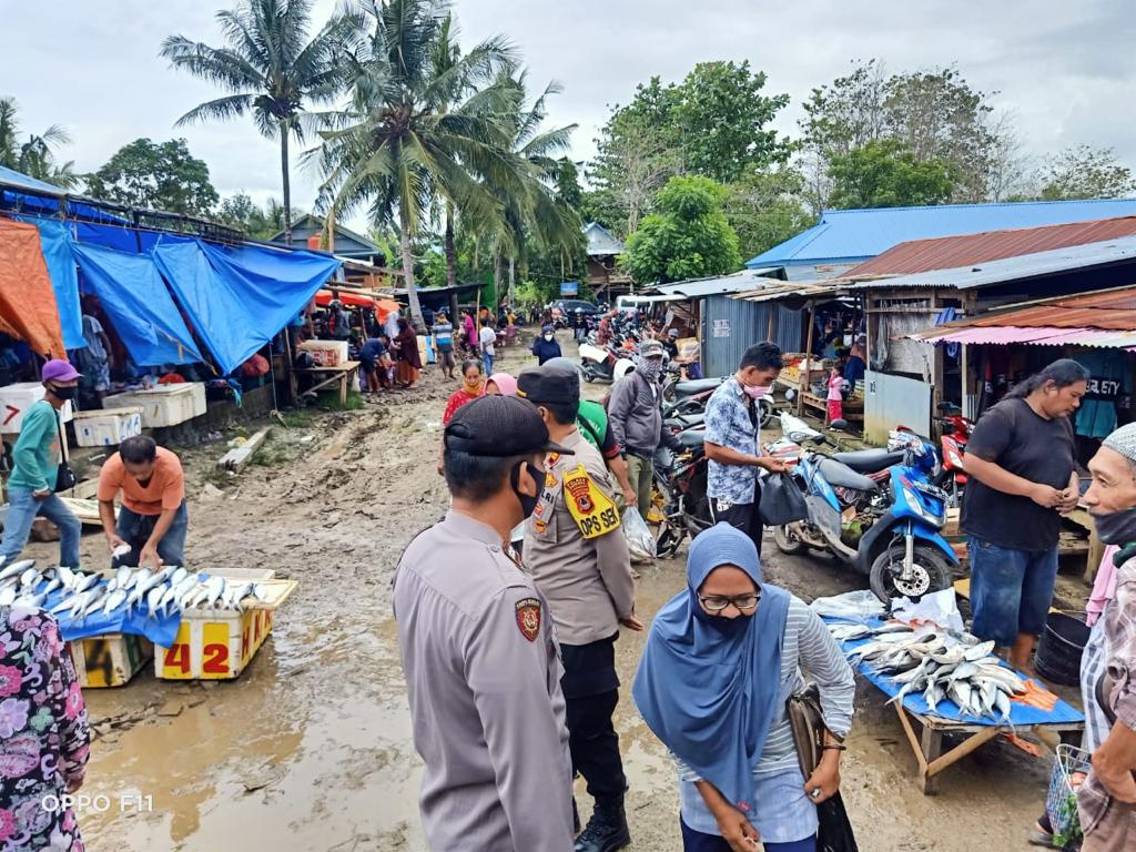 Selain melaksanakan pengamanan para personil juga Intens memberikan imbauan kepada para pengunjung pasar agar selalu mengikuti protokol kesehatan, memakai masker, menjaga jarak dan rajin cuci tangan.