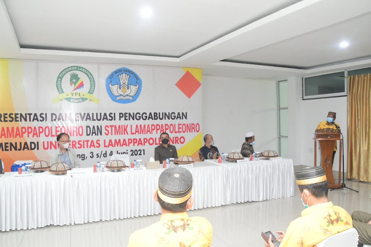 Bupati Soppeng H.A.Kaswadi Razak,SE dalam arahannya mengatakan atas nama pemerintah dan tentu merasa berbahagia serta berterima kasih, tentu merupakan kewajiban pemerintah daerah mensupport atas inisiasi dan perjuangan penggabungan ini, tentu melalui perjuangan yang panjang , hanya tekad dan keberanian serta komitmen yang bisa membawa kita kedalam tahap ini, mudah-mudahan apa yang menjadi tujuan dari visitasi ini dapat tercapai mengubah STIE -STIMK Lamappapoleonro menjadi universitas Lamappapoleoro.