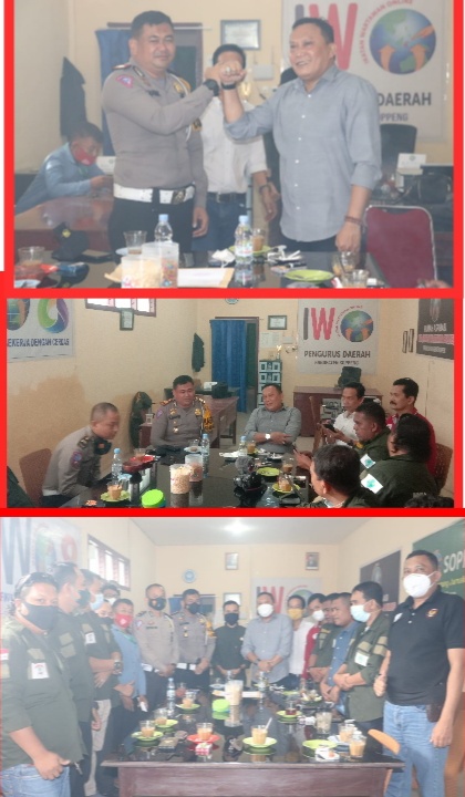 Kujungan Kasatlantas Polres Soppeng didampingi KBO Lantas Iptu Heryadi diterima langsung oleh Andi Mull Makmun Ketua Ikatan Wartawan (IWO) Soppeng didampingi pengurus dan anggota dikantor IWO Soppeng Jl.Pemuda, Rabu, (16/06/2021).