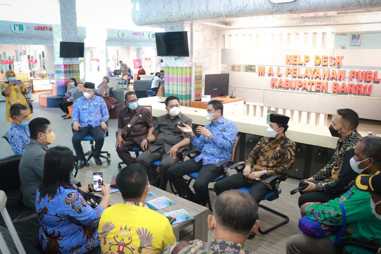 Rombongan anggota Komisi I DPRD Mimika yang sebelumnya berkunjung ke Kantor DPRD Barru, ingin mengetahui sejauh mana konsep pelayanan satu pintu di Mal Pelayanan guna mengoptimalkan pelayanan pemerintahan.