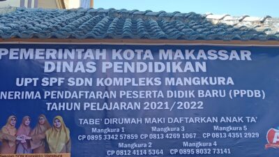 BN Online Makassar,–UPT SPF SD Negeri Kompleks Mangkura Makassar, Jl.Boto Lempangan No.65, Sawerigading, Kec.Ujung Pandang, Kota Makassar, Kota Makassar, saat ini melaksanakan Penerimaan Peserta Didik Baru (PPDB). Pendaftaran PPDB ini dilakukan secara online, Selasa (22/06/2021).