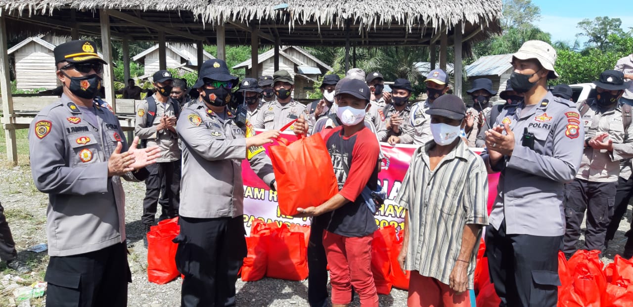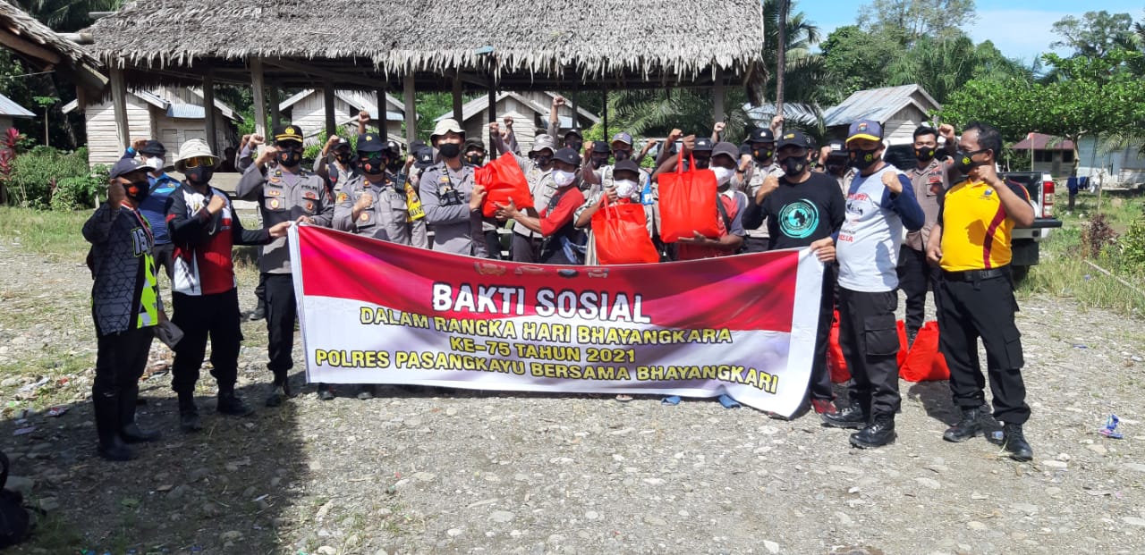 BN Online, Pasangkayu–Jelang Hari Bhayangkara Ke 75 tahun 2021, Personil Polres Pasangkayu Melaksanakan Bakti Sosial (Baksos) di Dusun Ponje Desa Polewali Kecamatan Pasangkayu. Sabtu Pagi (26/6/2021).