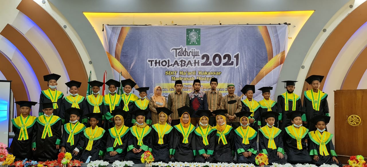BN Online, Makassar-–Sekolah Dasar Islam Terpadu (SD IT) Ma’arif Makassar menggelar Wisuda Takhriju Tholabah 2021 Angkatan ke-3 yang bertajuk “Santri Sehat dengan Al-Quran”, di Gedung Baitu Syura Jalan Arif Rahman Hakim kota Makassar, Sabtu (26/06/021).