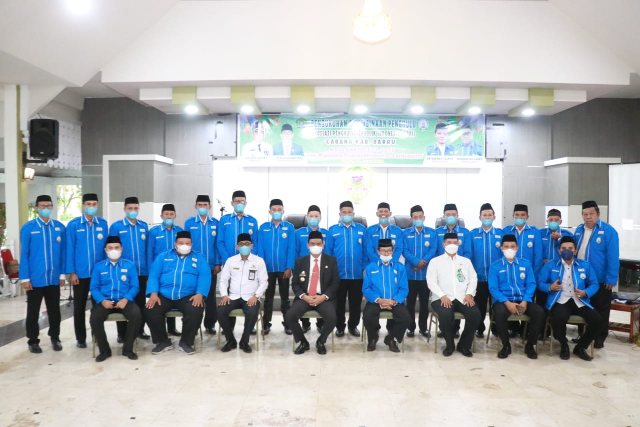 BN Online, Barru— Asosiasi Penghulu Republik Indonesia (APRI) Cabang Barru secara resmi dikukuhkan oleh Kepala Kementerian Agama Dr. Jamaruddin di Rumah Jabatan Bupati Barru, Senin (29/6/2021).