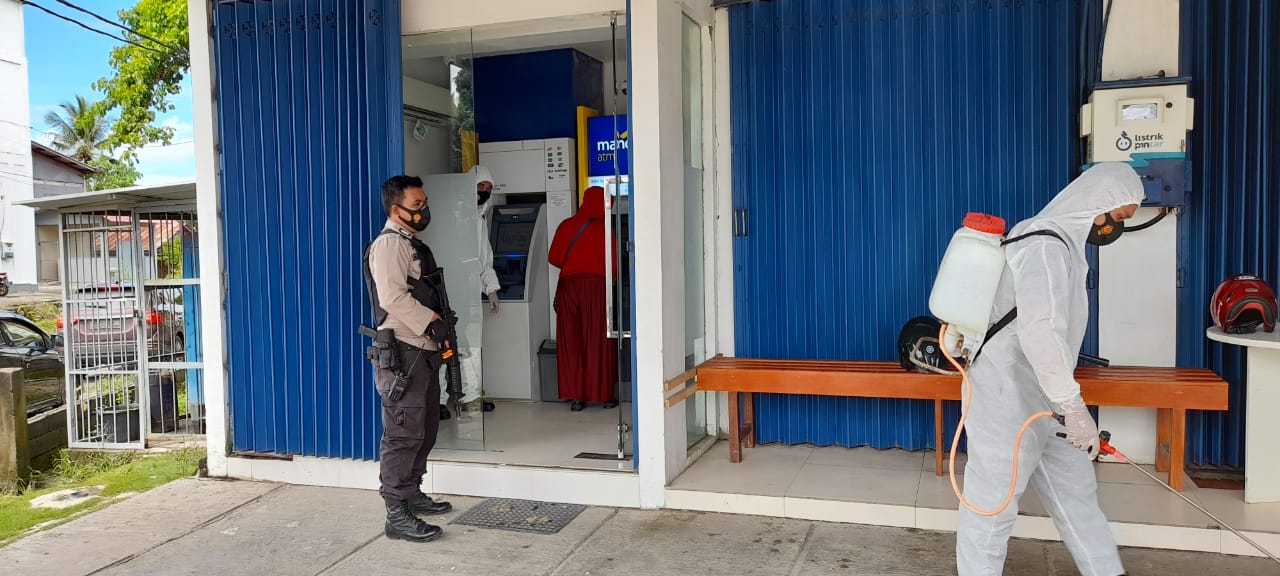 BN Online, Pasangkayu–Dalam rangka Hari Bhayangkara Ke 75 tahun 2021, Sat Samapta Polres Pasangkayu, Kabupaten Pasangkayu, Provinsi Sulbar, melakukan penyemprotan Desinfektan ditempat Ibadah dan ATM untuk memberikan kenyamanan disaat melaksanakan Kegiatan Ibadah dan Transaksi Keuangan.