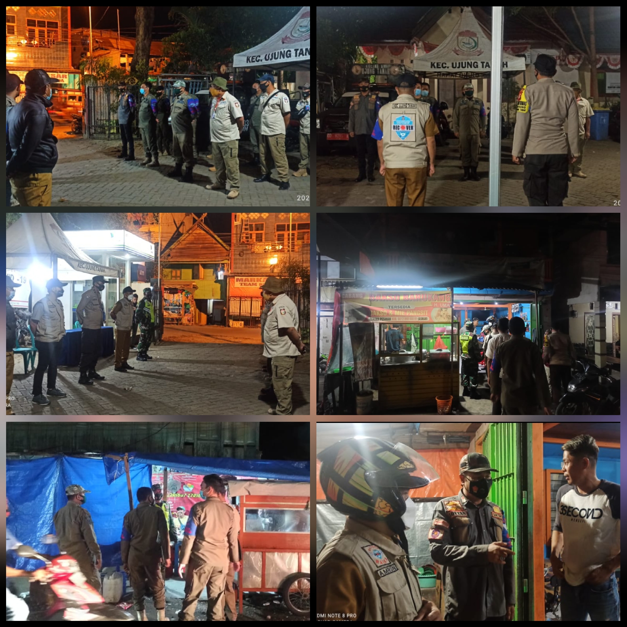 Dimana lokasi penertiban kerumunan yang menjadi sasaran patroli diatas jam operasional (20:00 Wita) adalah Warkop, Rumah Makan, Warnet, dan Alfamart / Indomaret yang ada di wilayah Kec.Ujung Tanah. Dalam pelaksanaan kegiatan, Satgas Raika (Pengurai Kerumunan) tetap melaksanakan pengawasan secara intensif.