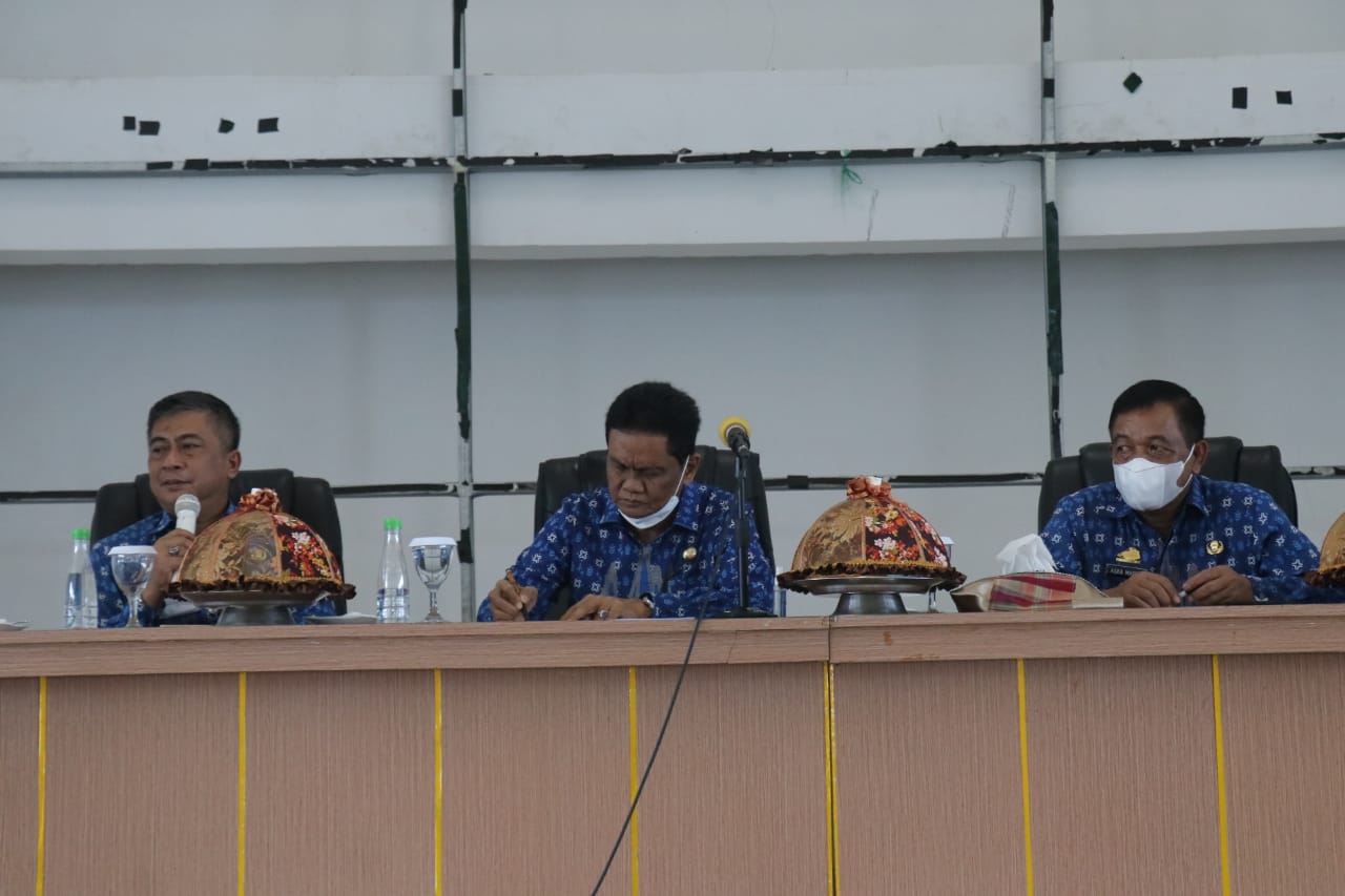 BN Online, Barru– Bupati Barru Ir. H. Suardi Saleh, M.Si, memimpin Rapat penanganan Covid-19, didampingi Wakil Bupati Aska Mappe, Sekretaris Daerah Dr. Abustan, M.Si di Aula MPP lantai 6 kantor Bupati Barru, Kamis 8/7/2021.