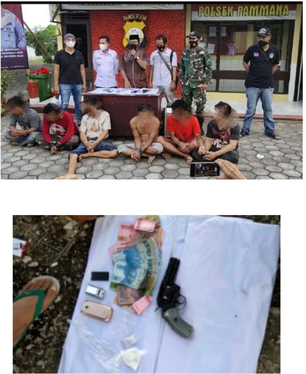 Keenam orang yang berhsil diringkus oleh jajaran Polsek Pammana dan Unit Intelkam Polres Wajo masing – masing berinisial AG,KH,SK,RD,BS ,AD.