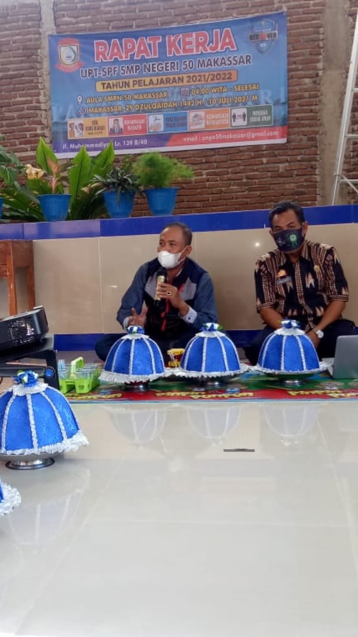 BN Online, Makassar–UPT SPF SMP Negeri 50 Makassar menggelar Rapat Kerja (Raker) Tahun Peljajaran 2021-2022, yang dilaksanakan di lingkup sekolah pada Sabtu (10/07/2021).
