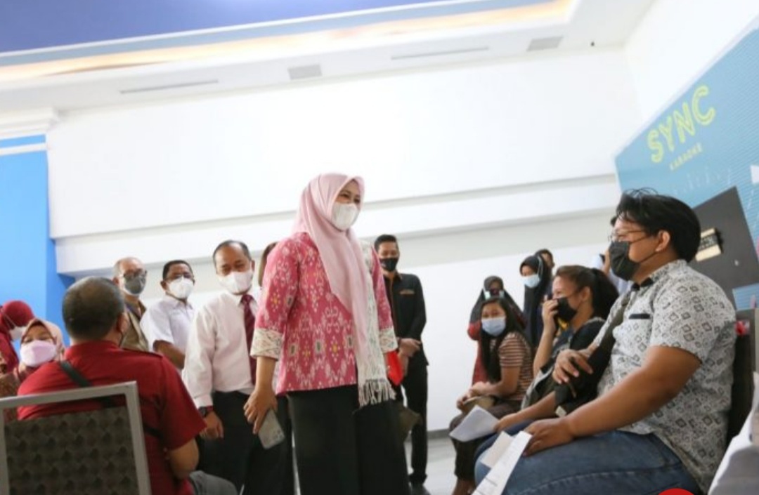 BN Online, Makassar--Wakil Wali Kota Makassar, Fatmawati Rusdi memantau jalannya Wisata Vaksin Gratis di Mall Pipo, Kamis (15/7/21).