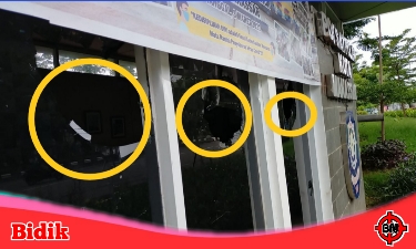BN Online, Makassar–Pos Satpol PP di Taman Gajah Metro Tanjung Makassar, Jalan Somba Opu, Kota Makassar, Sulsel, dirusak, Sabtu (17/7/2021). Empat kaca jebol diduga dilempar menggunakan batu berukuran besar dan sedang.