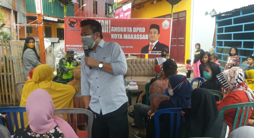 BN Online Makassar–Pelaksanaan Kegiatan Reses ke-III anggota DPRD Kota Makassar, William Fraksi PDIP, berlokasi di Jalan Tinumbu Lr.165C, Rt.06/Rw.02 Kelurahan Panampu Kecamatan Tallo Makassar. Sabtu (17/07/2021)