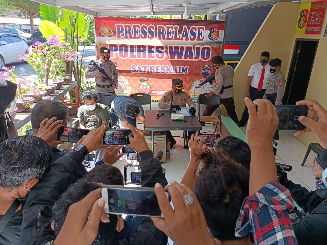 BN.Online, Wajo–Polres Wajo Menggelar Kegiatan Press Release Kasus Penipuan Penggelapan Yang Dipimpin Oleh Kapolres Wajo AKBP MUHAMMAD ISLAM A, S.IK. MM Didampingi KBO Sat Reskrim Dan Kasi Propam Polres Wajo. Rabu 28.7.2021.