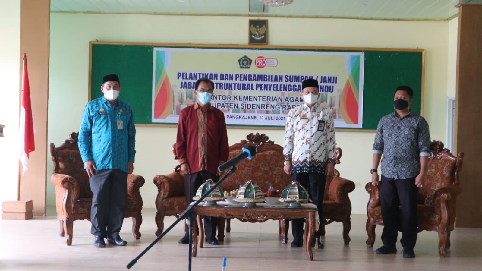 BN Online, Sidrap–Kakan Kemenag kabupaten Sidenreng Rappang melantik dan mengambil sumpah pejabat Struktural penyelenggara Hindu di aula kantor Kemenag sidrap, Jumat (30/07/2021)