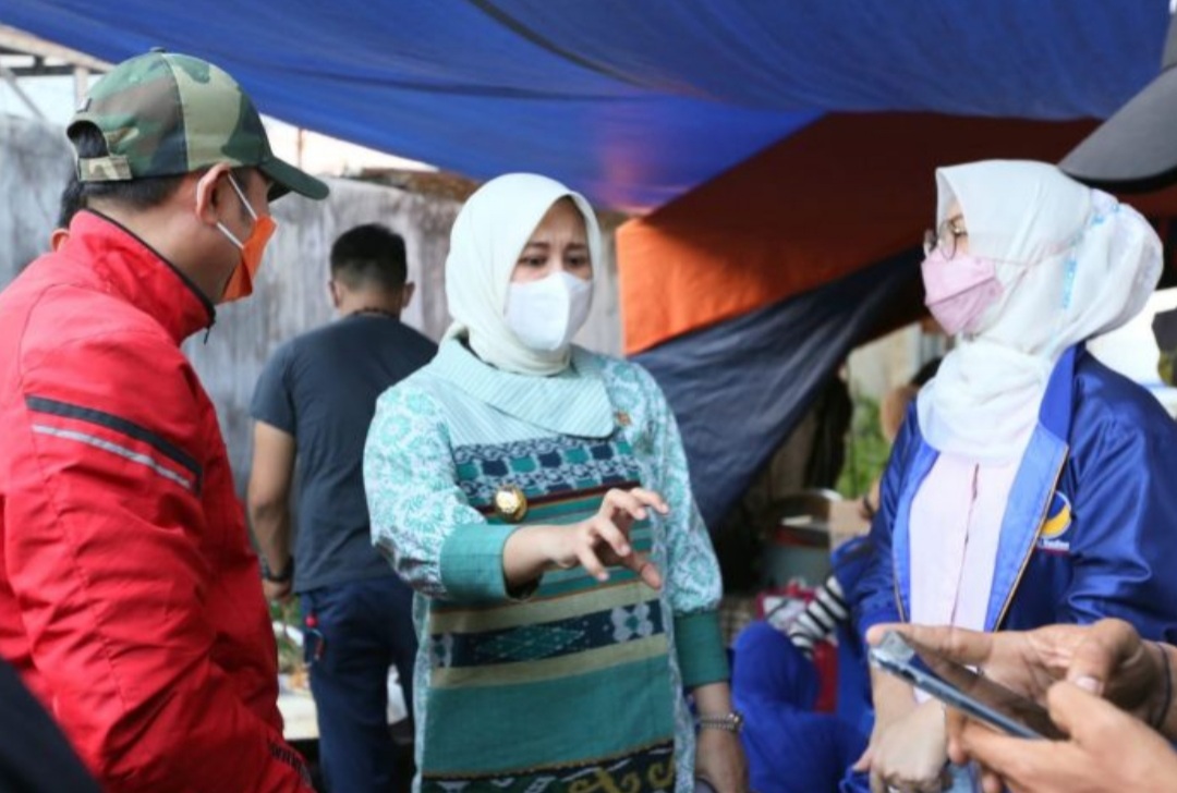 BN Online, Makassar–Wakil Walikota Makassar Fatmawati Rusdi meninjau langsung, warga korban kebakaran di Kampung Lepping, kelurahan Jongayya, Kecamatan Tamalate, Kota Makassar, Kamis (12/8/21).