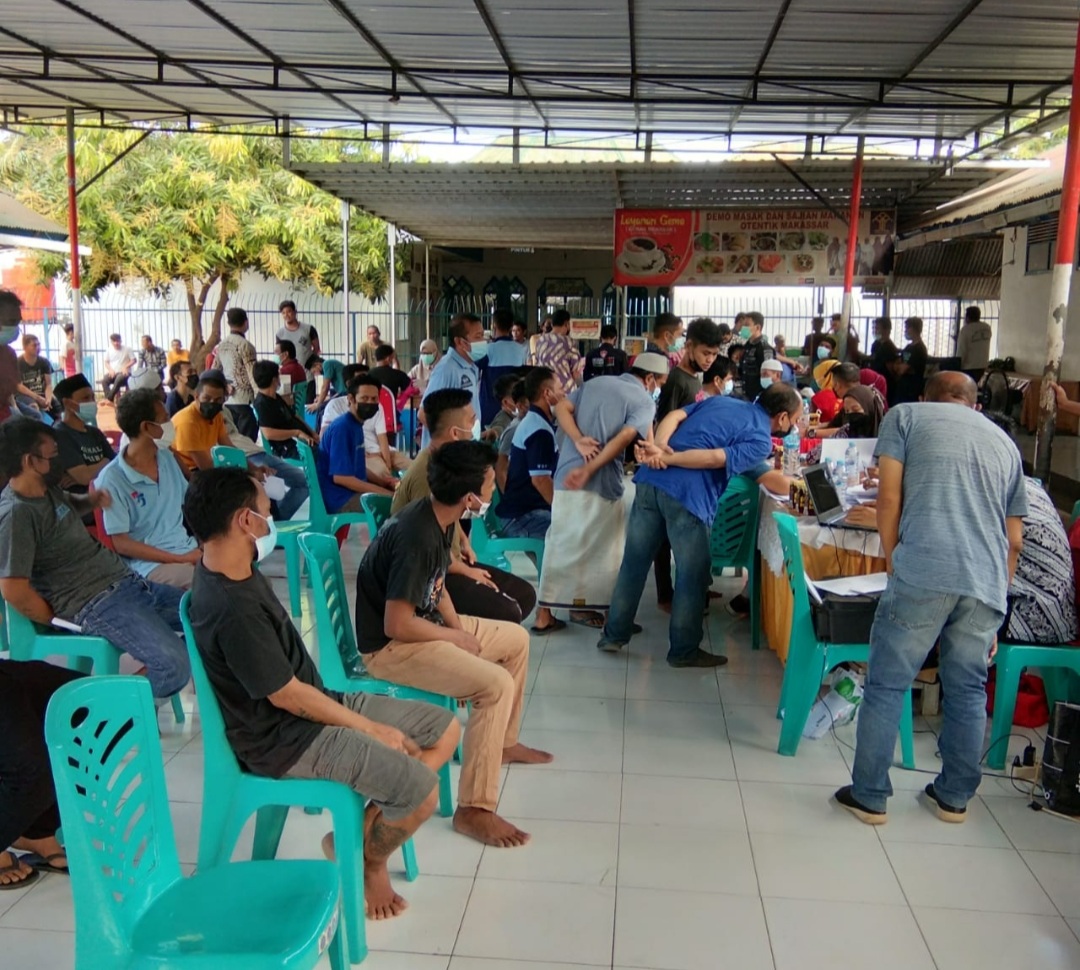 Dalam pelaksana Vaksinasi tersebut, ratusan warga binaan Pemasyarakatan Lapas Kelas II B Takalar antusias menjalani Vaksin Polri.