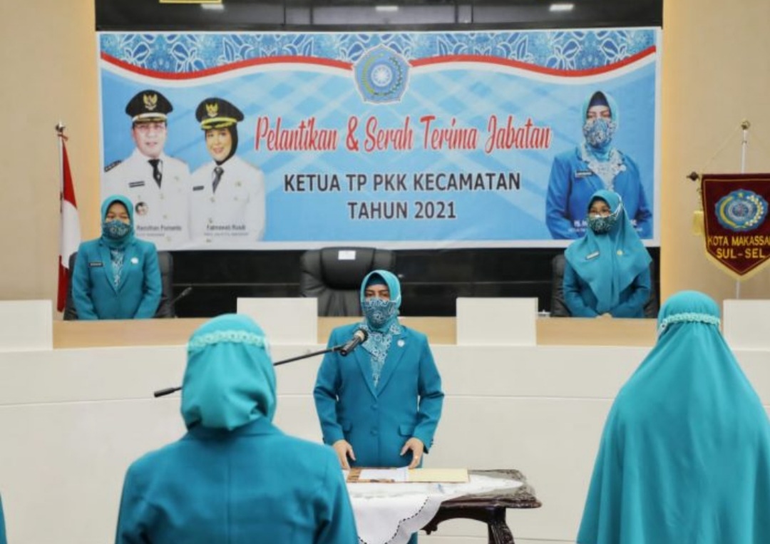 BN Online, Makassar–Ketua Tim Penggerak PKK Kota Makassar, Indira Jusuf Ismail melantik 14 Ketua TP PKK Kecamatan di Ruang Sipakatau Kantor Balaikota Makassar, Senin (30/08/2021).