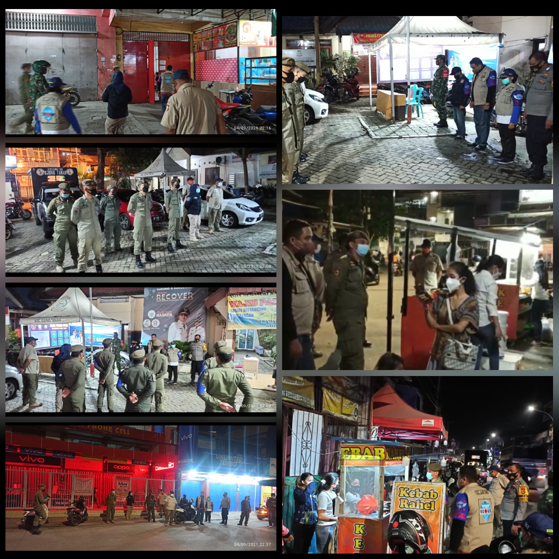 Dimana lokasi tempat kerumunan yang menjadi sasaran patroli adalah warung makan, rumah makan, kafe, pedagang kaki lima, lapak jajanan yang ada di wilayah Kec.Ujung Tanah yang masih beroperasi di atas jam 22:00 Wita, dan menyebabkan kerumunan.