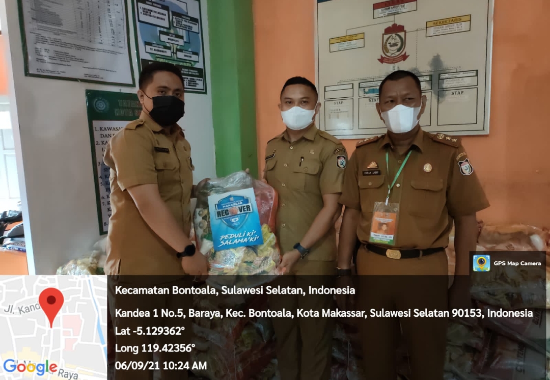 BN Online Makassar–Lurah Baraya menerima penyerahan sembako tahap kedua Dari Dinas Sosial dan disaksikan langsung oleh tim Kecamatan Bontoala Makassar, bantuan dari Dinas sosial tersebut akan disalurkan kepada Warga yang sudah terdata dan terverifikasi oleh Pemerintah di setiap kelurahan, saat ini penyaluran sembako tahap dua Kelurahan Baraya telah didistribusikan, Senin 06/09/2021.