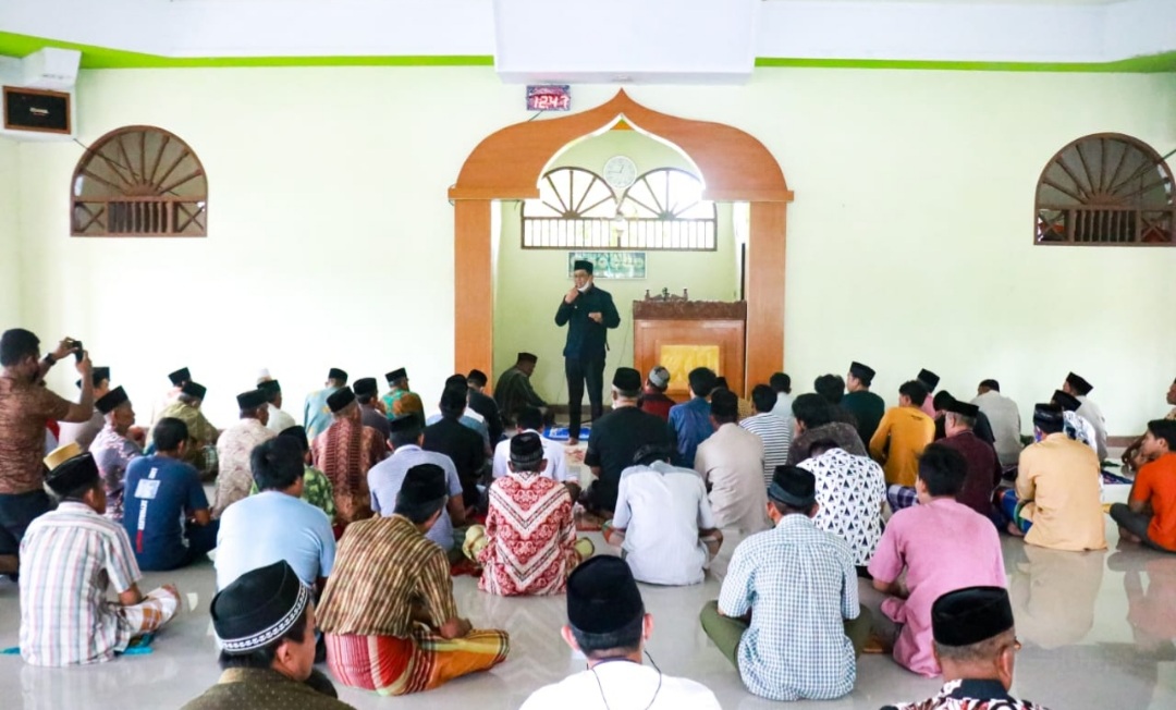 BN Online, Barru–Bupati Barru Ir. H. Suardi Saleh, M.Si melaksanakan sholat jumat di masjid Nur Habibi Lanrae Desa Nepo Kecamatan Mallusetasi 10/9/2021.
