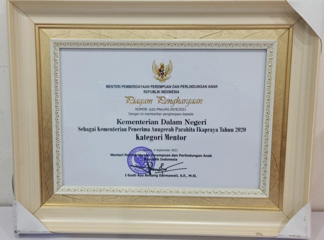 BN Online, Jakarta–Kementerian Dalam Negeri (Kemendagri) mendapatkan Penghargaan Anugerah Parahita Ekapraya (APE) Tahun 2020 dari Kementerian Pemberdayaan Perempuan dan Perlindungan Anak Republik Indonesia (KemenPPPA RI) untuk Kategori Mentor. Anugerah ini merupakan penghargaan tertinggi dari KemenPPPA RI. Sebelumnya, Kemendagri berhasil meraih 5 kali penghargaan untuk Kategori Utama.