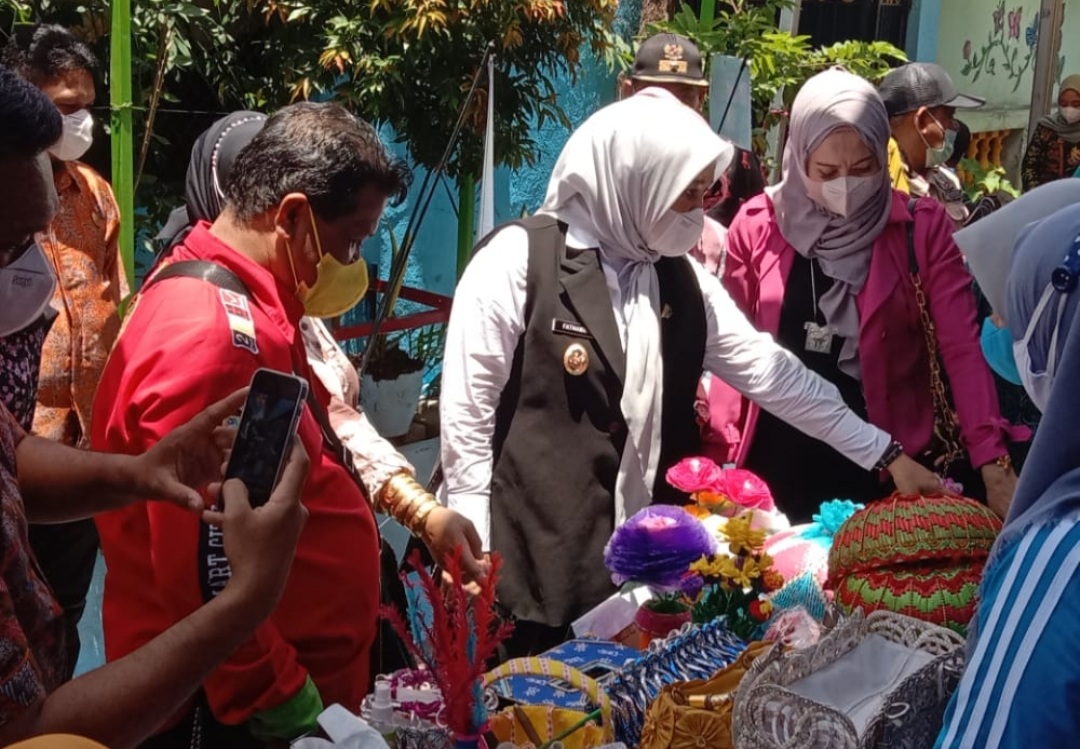 Wakil Walikota Fatmawati Rusdi, salah satu tim penilai mengunjungi lokasi lomba UKM di Kelurahan. Ujung Tanah, Kecamatan Ujung Tanah Kota Makassar.
