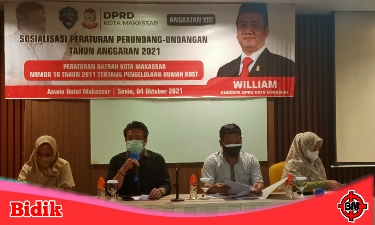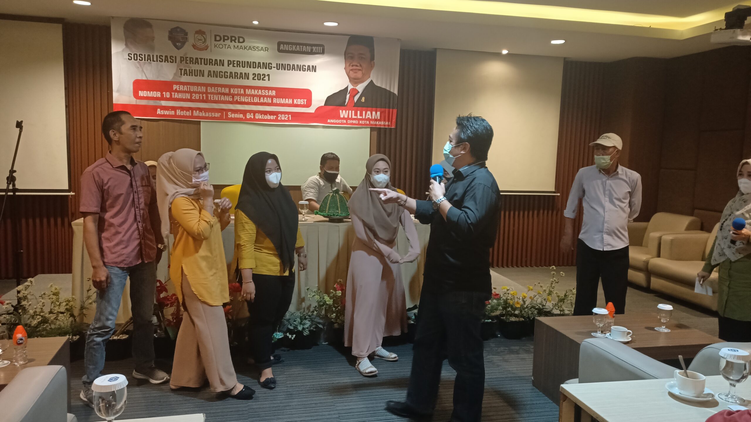 “Kegiatan sosialisasi Peraturan Perundang-undangan Tahun Anggaran 2021 membahas tentang Peraturan Daerah Kota Makassar No.10 Tahun 2011 tentang pengelolaan rumah kost, bertujuan untuk memberikan pemahaman terhadap warga kota Makassar agar dapat memahami dan mengerti tentang Perda tersebut.” kata William.