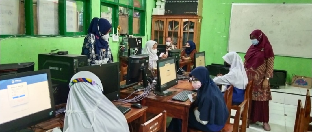 BN Online, Makassar--Pelajar kelas VIII Sekolah Menengah Pertama (SMP) mengikuti pelaksanaan Asesmen Nasional Berbasis Komputer (ANBK) 2021 di SMP Negeri 17 Makassar, Senin (4-5/10/2021).