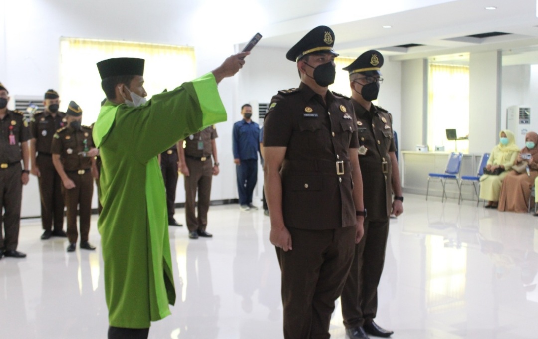 BN Online, Pasangkayu–Bertempat di ruang pola Kantor Kejaksaan Negeri (Kejari) Pasangkayu, Provinsi Sulbar, Kepala Kejaksaan Negeri (Kajari) Pasangkayu, Muchsin,SH,MH, pimpin langsung serah terima jabatan (Sertijab) Kepala Seksi (Kasi) Barang Bukti dan Barang rampasan (BB), Selasa (12/10-2021).