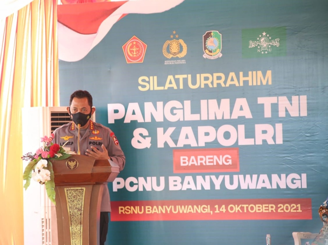BN Online, Banyuwangi–Panglima TNI Marsekal Hadi Tjahjanto bersama Kapolri Jenderal Listyo Sigit Prabowo melakukan silaturahmi dengan PCNU Banyuwangi, Kamis, 14 Oktober 2021. Dalam kegiatan ini, Sigit mengucapkan terima kasih dan apresiasi karena mandapatkan sambutan yang hangat.