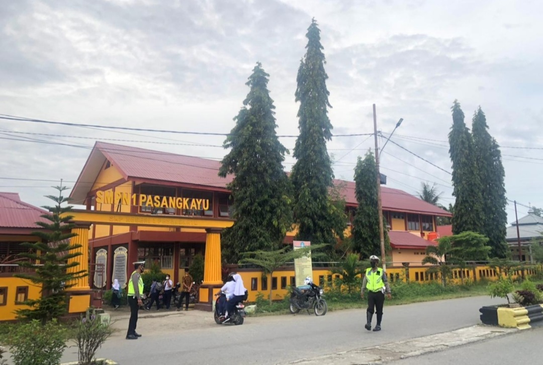 BN Online, Pasangkayu–Guna memberikan pelayanan kepada masyarakat di pagi hari, Satuan Lalu lintas (Sat Lantas) Polres Pasangkayu, Kabupaten Pasangkayu, yang berada dalam jajaran Polda Sulbar, menurunkan personelnya melaksanakan pengaturan lalu lintas (Gaturlalin) di jalan – jalan dalam kota Pasangkayu, Kamis (14/10-2021).