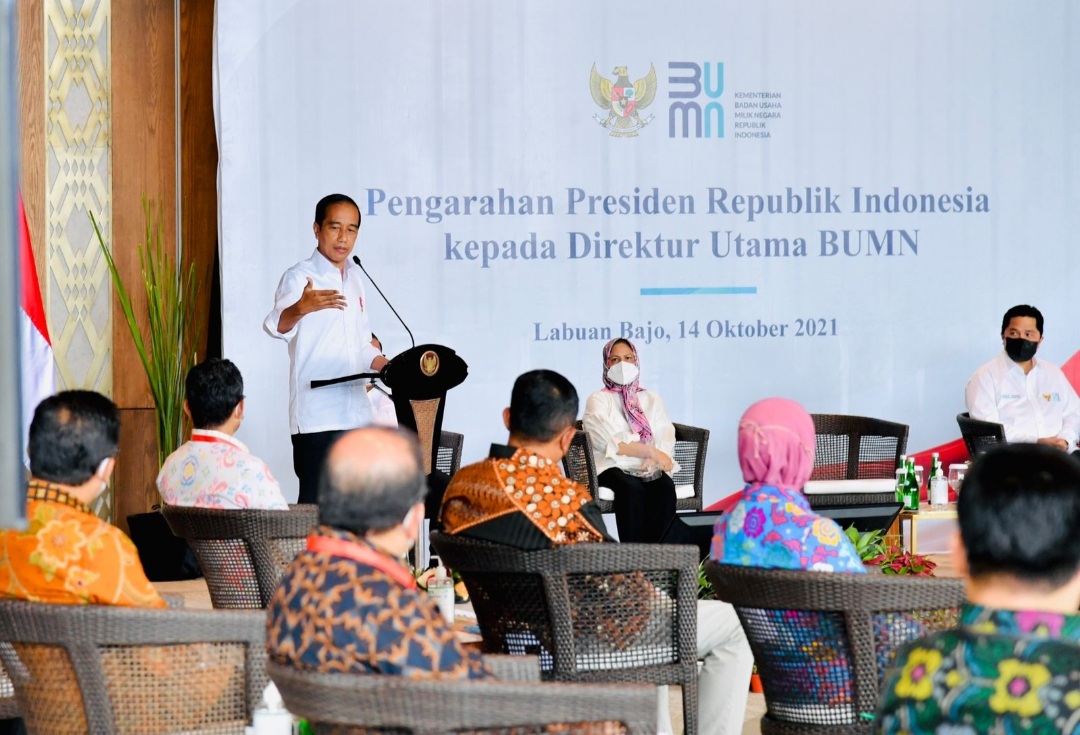 Demikian disampaikan Presiden saat memberikan arahan kepada para Direktur Utama BUMN di Hotel Meruorah Komodo, Kabupaten Manggarai Barat, Nusa Tenggara Timur (NTT), pada Kamis, 14 Oktober 2021.