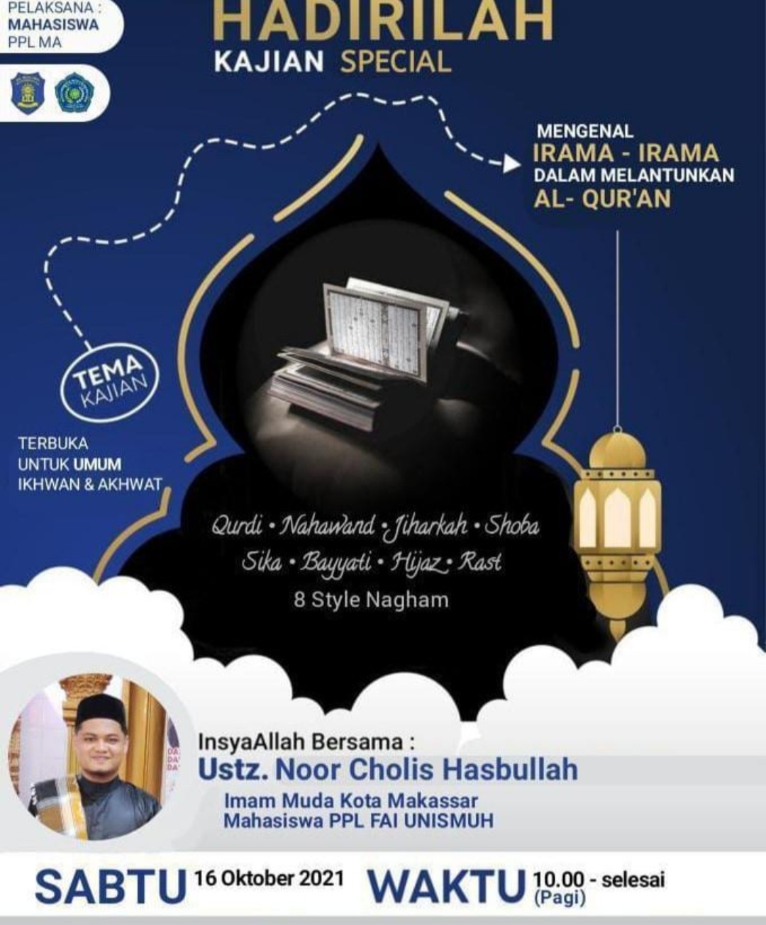 BN Online, Makassar–Mahasiswa PPL Jurusan Ilmu Agama Islam Unismuh Makassar, bekerja sama dengan MA. Muallimin, mengelar kegiatan Kajian Spesial Irama – Irama Dalam Melangtungkan Al – Quran, Sabtu ( 16/10/21 ).
