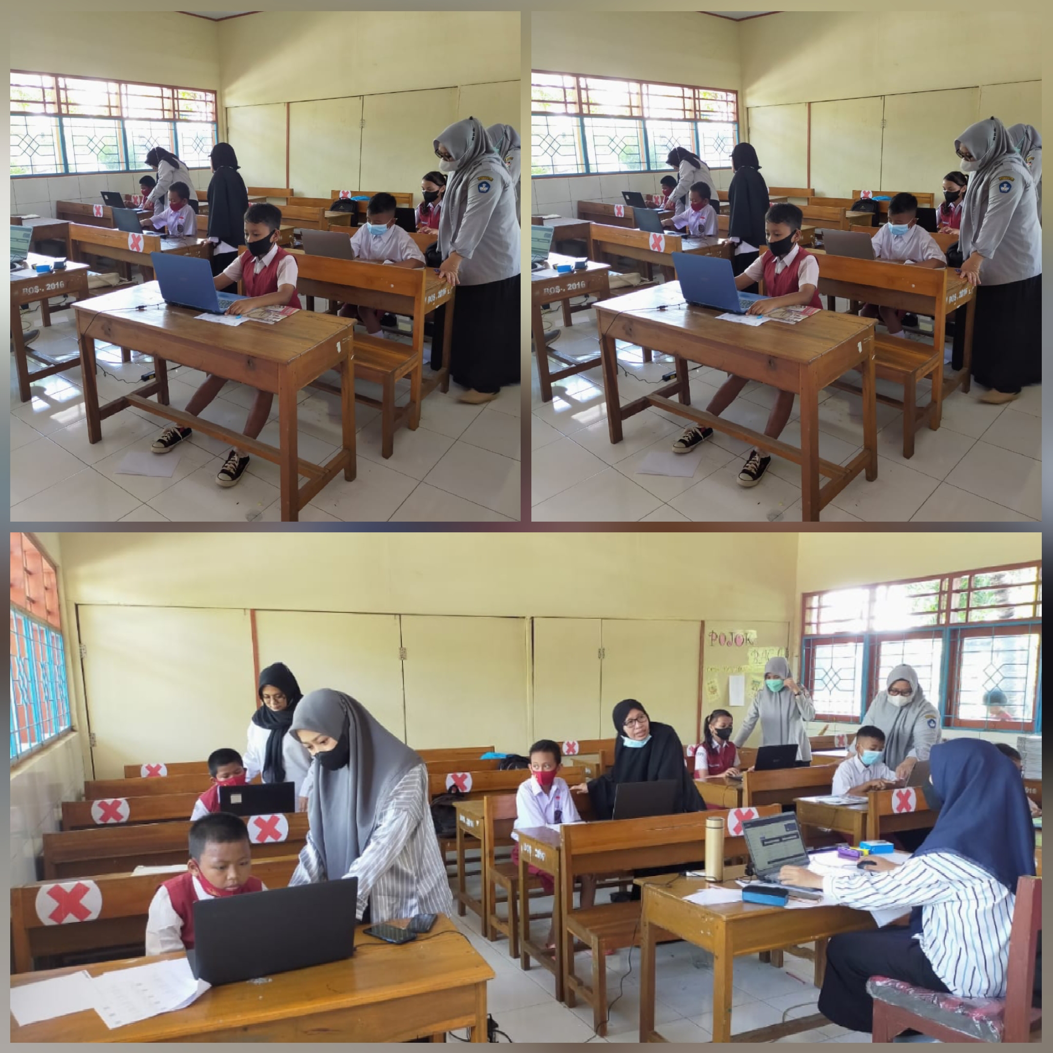 Kegiatan simulasi ANBK berjalan lancar. Siswa dengan tertib mengikuti arahan guru. Sebelum memasuki lingkungan sekolah, siswa diwajibkan cek suhu dan mencuci tangan. Lalu mengikuti arahan guru menuju ruang kelas. Siswa yang masuk ke dalam kelas dibatasi maksimal 6 orang. Siswa yang belum mendapat giliran masuk ruang kelas, didampingi guru menunggu dan latihan soal di ruang kelas.tutup Fatmawati
