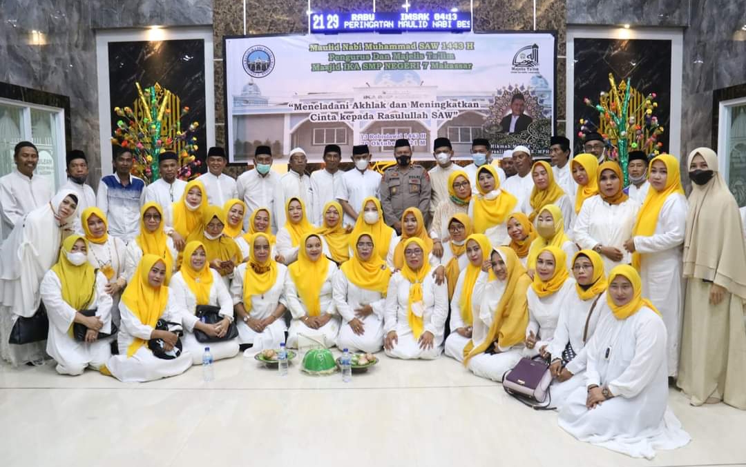BN Online, Makassar–Camat Ujung Tanah Ibrahim Chaidar Said, S.IP., M.Si bersama Kapolsek Ujung Tanah di dampingi Lurah Totaka Hamdani Nur menghadiri Undangan Peringatan Maulid Nabi Muhammad SAW 1443 H Bersama Pengurus dan Majelis Ta’lim Ika SMP Negeri 7 Makassar dan masyarakat Kelurahan Totaka Kecamatan Ujung Tanah. Rabu (20/10/21).
