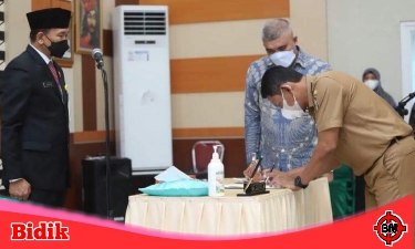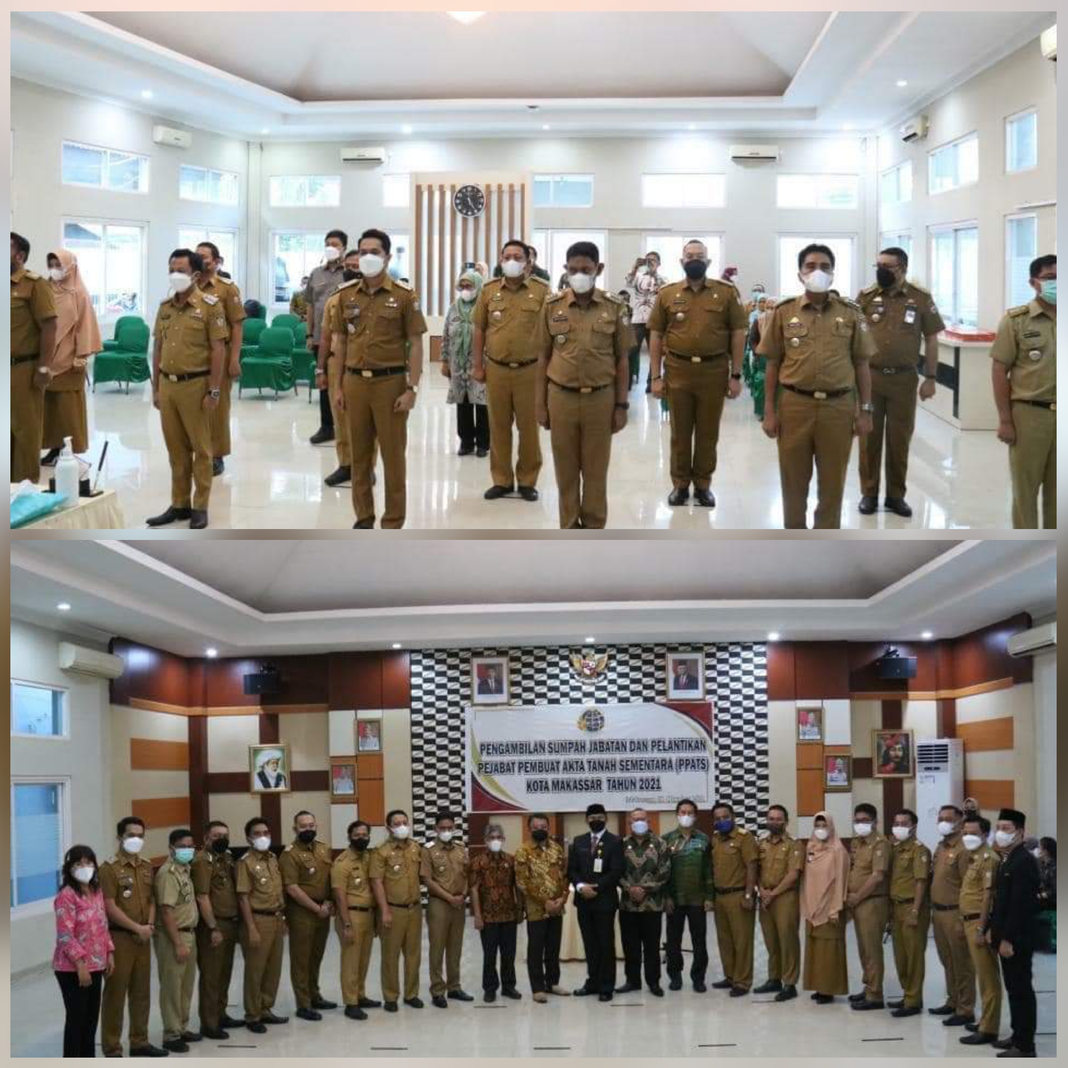 Camat Ujung Tanah Ibrahim Chaidar Said, S.IP,M.Si dilantik sebagai Pejabat Pembuat Akta Tanah Sementara (PPATS) oleh Kepala Kantor Badan Pertanahan Nasional Kota Makassar Yan Septedyas, berlokasi di Aula Kantor Pertanahan Jalan Andi Pangerang Pettarani Makassar, Kamis,21 Oktober 2021.