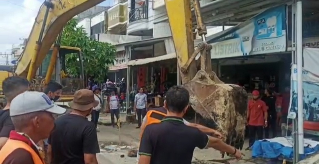 H.Amran Mahmud juga menyampaikan bahwa untuk Pembersihan hari ini juga menurunkan alat berat untuk memaksimalkan pembersihan, khususnya saluran drainase yang tertutup oleh bangunan plat beton dari pemilik toko.