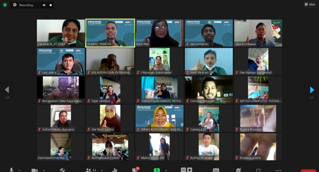 BN Online, Pasangkayu–Bekerjasama dengan Dinas Koperasi dan UMKM Kota palu dan Kabupaten Pasangkayu serta Dinas Perikanan Kabupaten Pasangkayu, PT Astra Agro Lestari (AAL) Area Sulawesi menyelanggarakan kegiatan Webinar Ekonomi dengan tema “Semangat Membangun Usaha di Masa Pandemik”, Selasa, (5/20-2021).